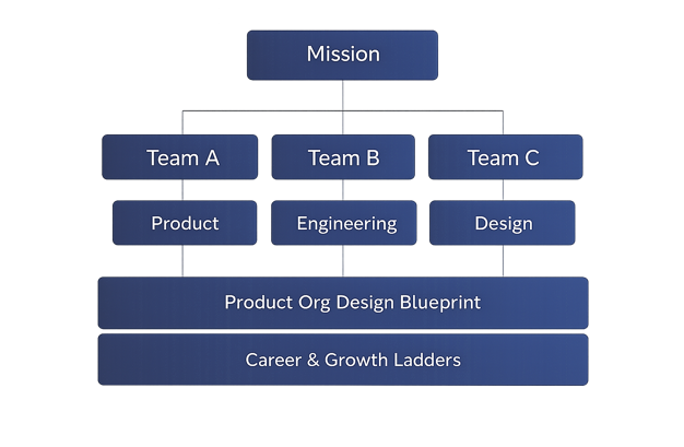 Frameworks for designing, scaling, and restructuring product organizations — including team topology, role clarity, decision rights, and operating rhythm across different stages of growth.
